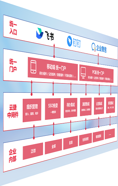 对协作平台提供支持服务,,支持企业应用与协作平台对接,,,包含组织同步、、、、消息集成、、、、待办集成等。。。。支持目前主流的协作平台:钉钉、、企微和飞书。。。